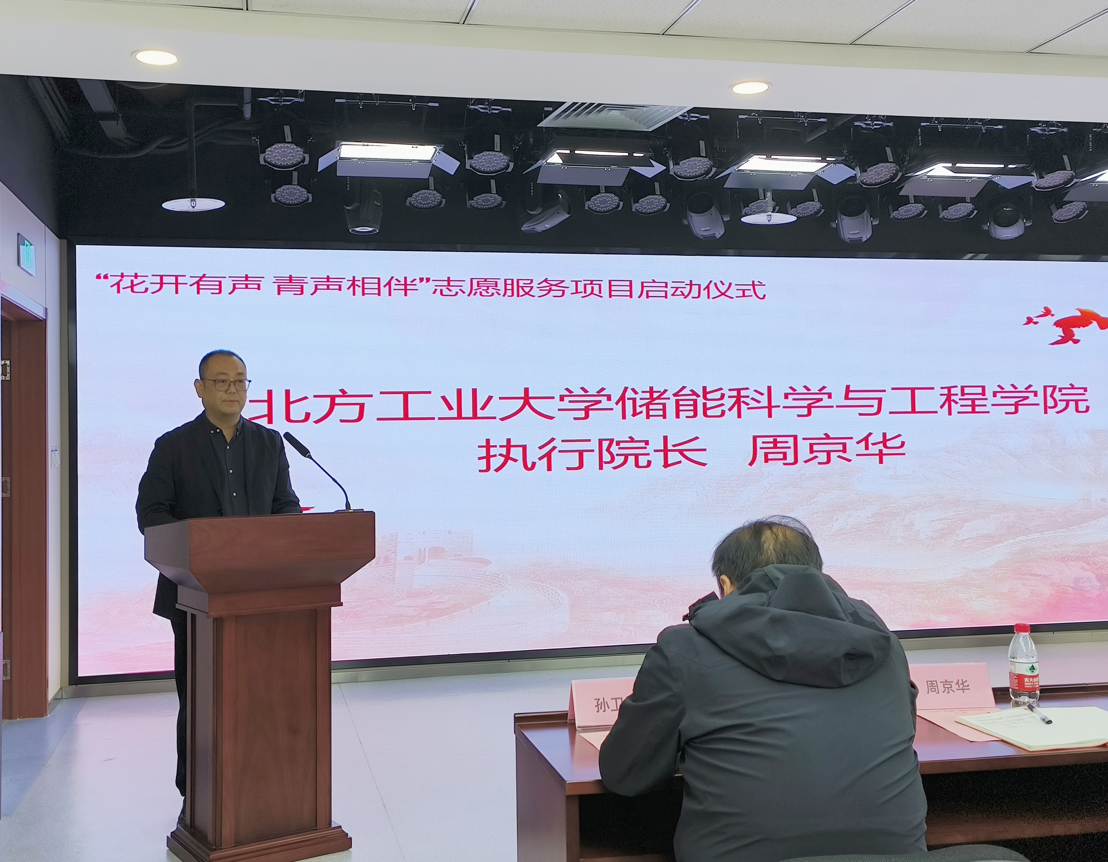 志愿者代表,储能23班员工于博洋庄严承诺:“将以专业与热忱架设心桥,用青春之声温暖听障人群。”
