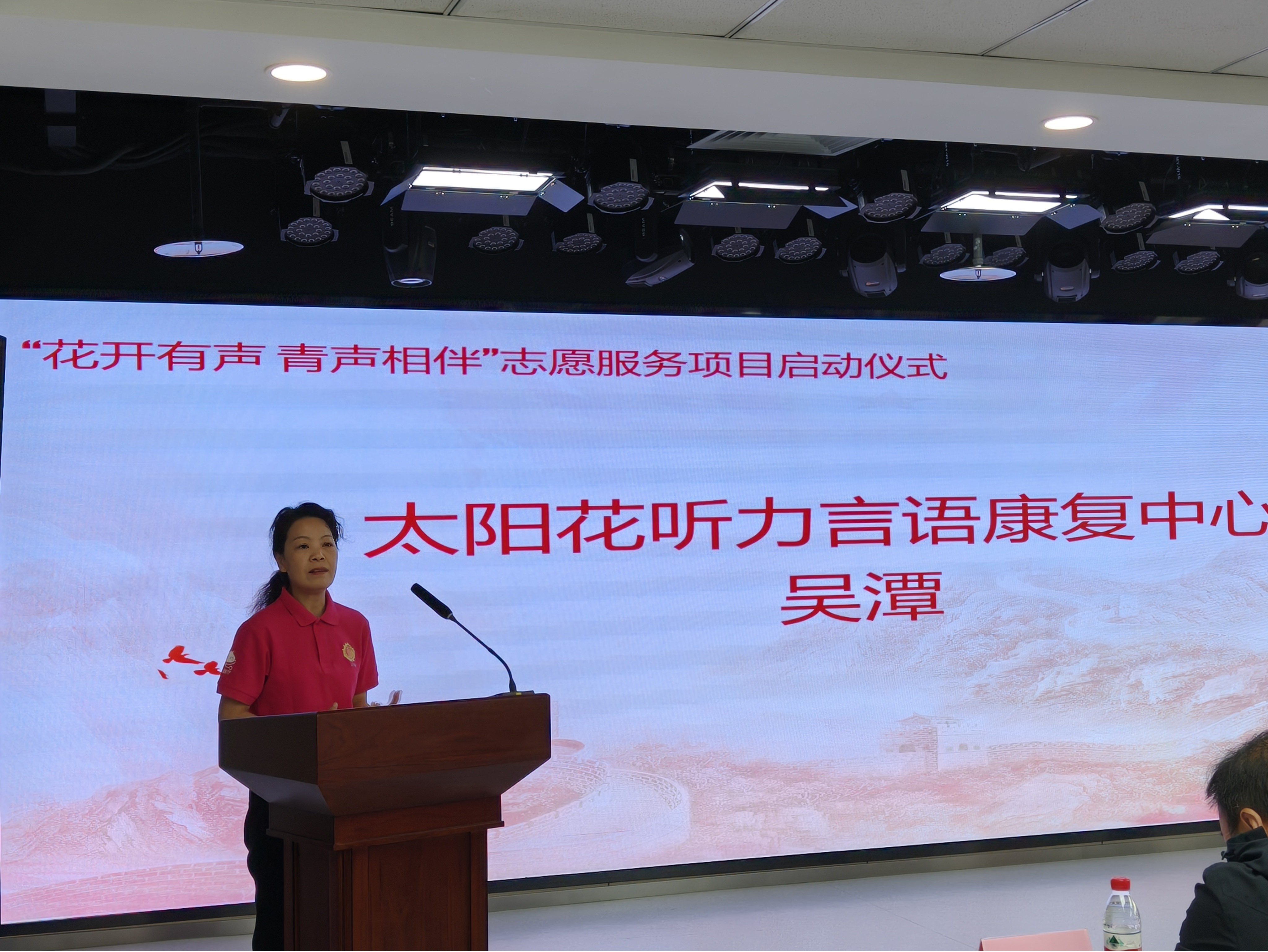 吴潭代表“太阳花”听力言语康复中心致谢。她表示,中心将尽责尽职地为志愿服务提供专业化指导,帮助青年志愿者专业、高效地开展针对听障群体的志愿服务。她希望通过志愿服务队的成立,吸引更多爱心人士关注听障群体,传递社会温暖,真正解决听障群体康复“最后一公里”的难题。