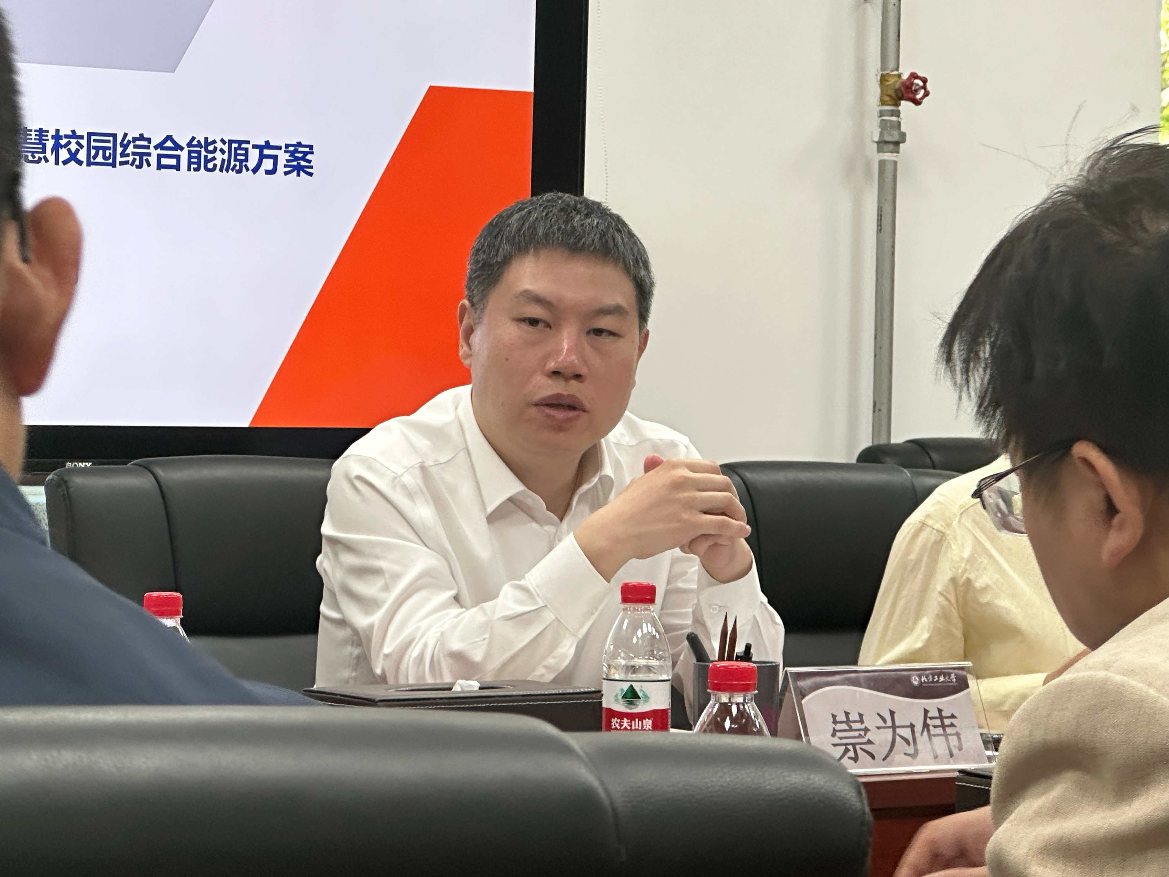 崇为伟介绍了京能科技在新能源、综合能源服务等领域的产业布局,重点阐述了集团在太阳成集团tyc234cc延庆校区的低碳改造规划。他表示,京能科技将充分发挥在能源数字化、智慧运维等方面的技术优势,与公司共同探索“零碳校园”解决方案,推动科研成果转化与人才培养双向赋能。京能科技长三角分公司副总经理马勍详细介绍了具体技术路径和合作模式提出了建设性意见。