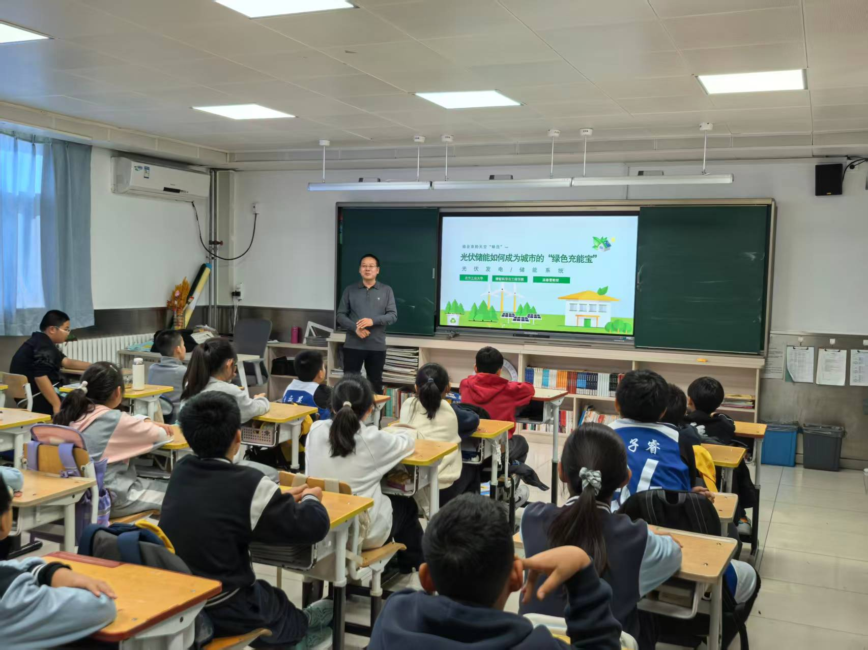 11月12日,公司太阳成集团tyc234cc温春雪教授受邀走进北京市回龙观中心小学,为师生带来一场题为《给北京的天空“降压”——光伏储能如何成为城市的“绿色充能宝”》的专题科普讲座。本次活动是校园科普系列活动的重要组成部分,现场气氛热烈,师生积极参与。