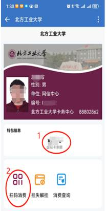 在企业微信中,点击“工作台”,找到”校园V卡”小程序,如经常使用,可长按“校园V卡”小程序,添加至常用,如下图所示。校园V卡可在食堂及超市刷码消费,进入校园V卡后可看到“虚拟卡余额”,即校园卡余额,在余额充足情况下,点击“扫码消费”,将二维码对准放在卡机扫码处,听到“滴”的一声扫码成功。