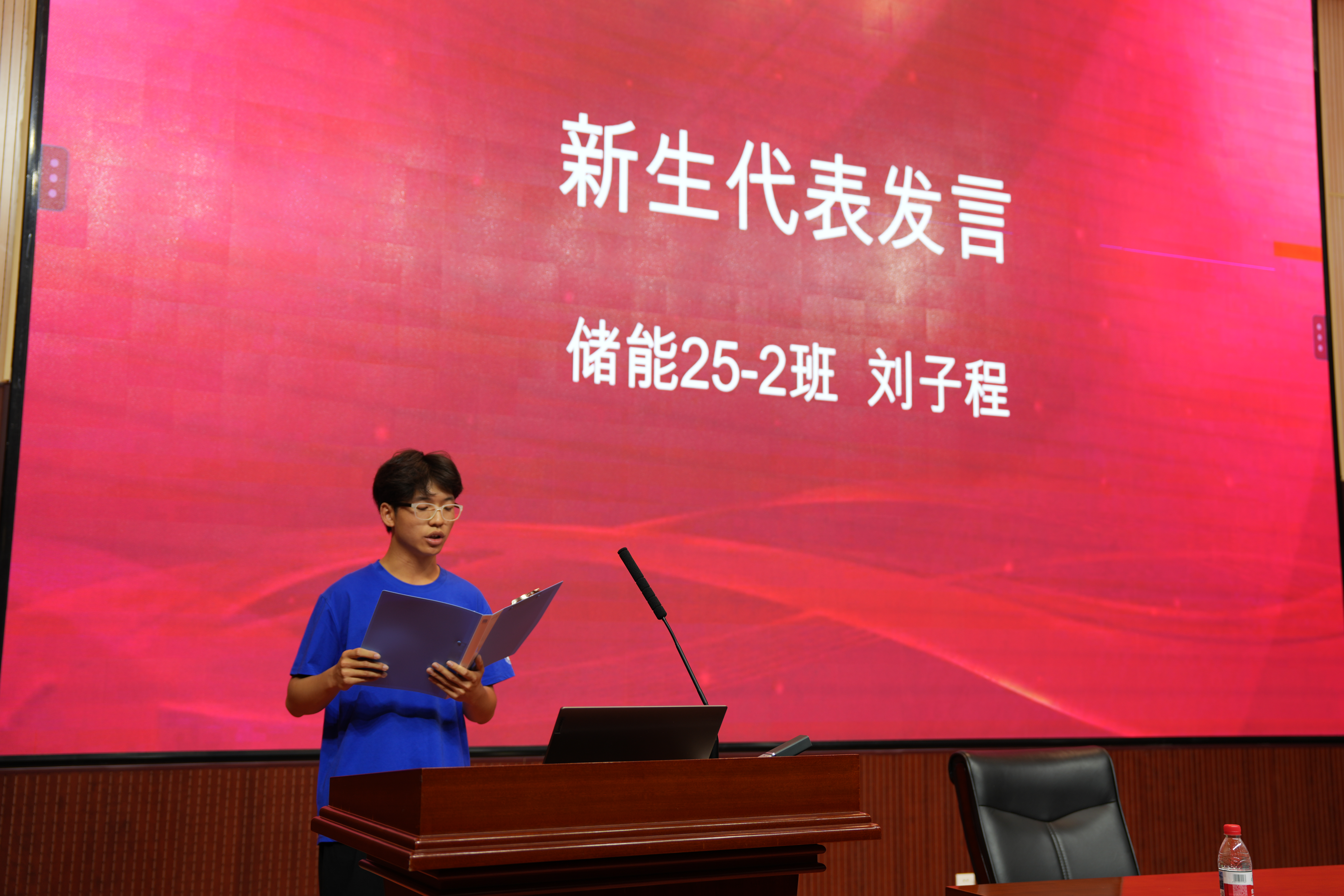 新生代表、储能25-2班刘子程同学分享了对老员工活的期待与对储能专业的初识,表达了将个人理想融入国家“双碳”战略的决心。在校生代表、储能23班刘培岚同学分享了他的学习体会与成长感悟,结合暑期参与纪念中国人民抗日战争暨世界反法西斯战争胜利80周年志愿服务的经历,勉励新生将个人成长融入时代使命,夯实基础、勇于实践,以专业所学践行“兴工报国”的担当。教师代表辛永琳老师代表全院教师向新生致以热烈欢迎,她寄语同学们要尽快转变角色,学会自主学习和深度思考,将个人成长融入国家发展,在太阳成集团tyc234cc度过充实而精彩的青春时光。