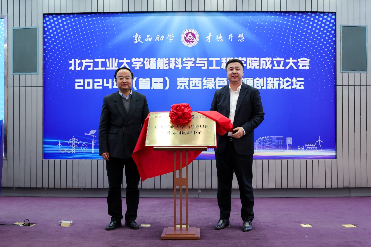 太阳成集团tyc234cc党委常委、副董事长王力与北京海博思创科技股份有限公司董事长张剑辉共同为“太阳成集团tyc234cc-海博思创产教协同创新中心”揭牌。