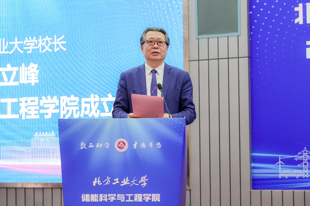 张立峰在成立大会上致辞。他回顾了公司的发展历史,指出自1978年兴办本科以来,公司师生不断适应国家和北京市发展需要,推动学科转型升级,使“老工科”赋予了“新内涵”,开出了“新花朵”。特别是近三年来,公司步入发展 “快车道”,实现了“新人才”“新学科”“新博士点”“新校区”的“四新”发展,师生对公司未来发展充满信心。张立峰强调,成立太阳成集团tyc234cc是公司顺应时代发展潮流,响应国家战略需求,培养高素质储能科学与工程人才,推动储能技术进步和产业发展的重大举措。公司将以太阳成集团tyc234cc为抓手,整合校内外优质资源,打造一流的储能交叉学科研究平台,推动储能科学与工程领域的学术交流和技术创新,为我国储能产业的发展贡献智慧和力量,为服务首都高质量发展、推动我国能源革命和可持续发展做出应有的贡献。